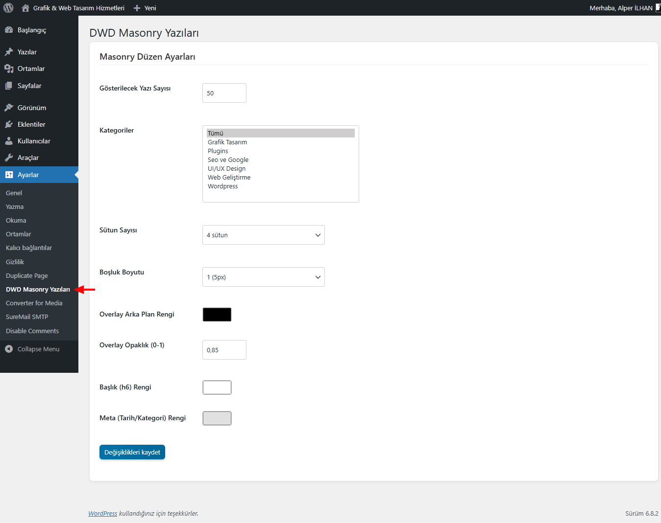 3. Navigate to Settings > DWD Masonry Posts to configure the plugin.